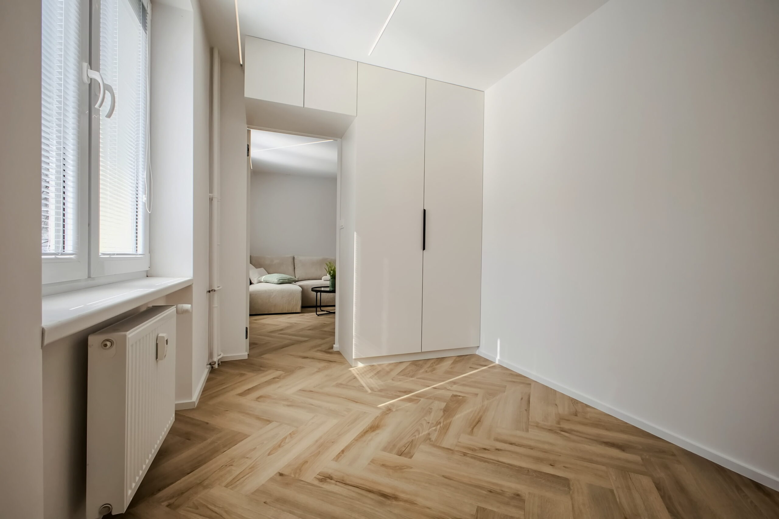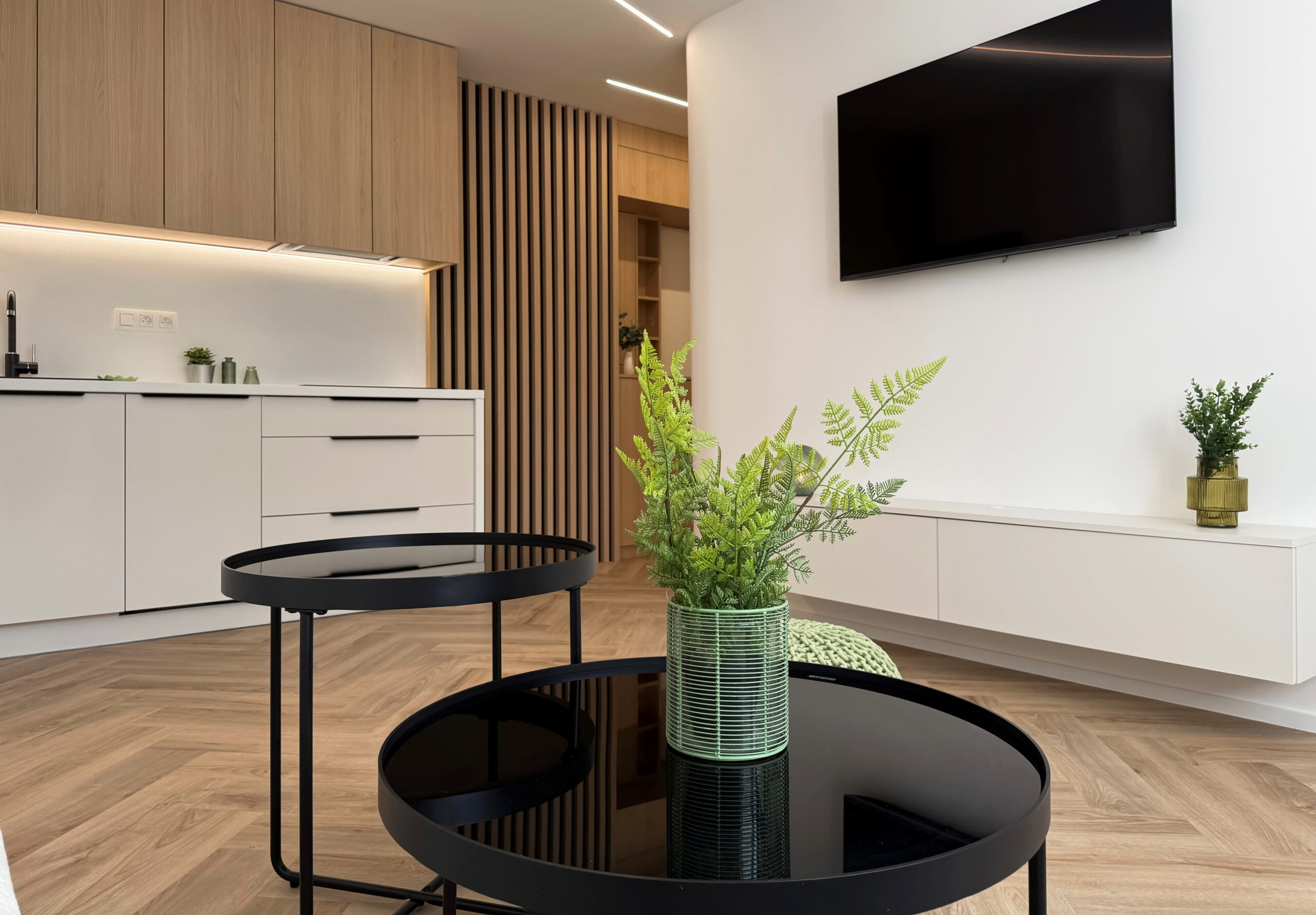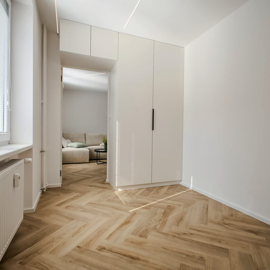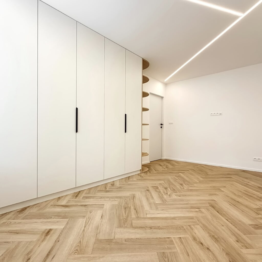Vstúpte do interiéru, v ktorom sa estetika čistých línií spája s pocitom domova. Tento byt predstavuje dokonalú synergiu moderného minimalizmu a hrejivých prírodných materiálov, pričom každý prvok bol starostlivo vybraný s cieľom vytvoriť vizuálne vyvážený celok.